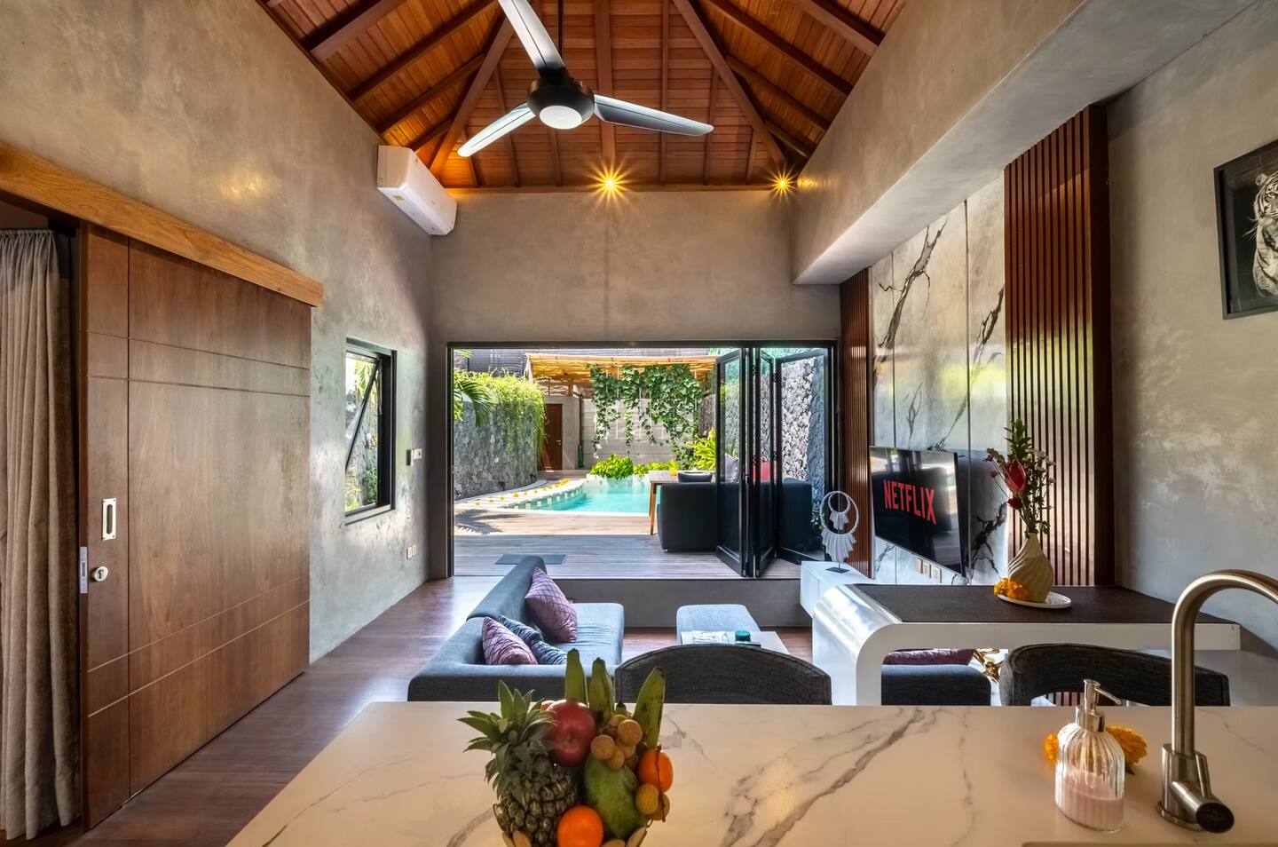 The location was perfect tucked away enough to feel peaceful, but still close to great cafes and the beach. The villa was clean, spacious, and beautifully designed with a great pool and open living area. Also loved being up on the rooftop for sunset! The staff were super friendly and responsive to anything I needed. Would definitely come back again!