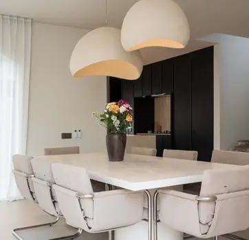 At the heart of the home, a sunken circular lounge invites slow mornings with coffee and long evenings with wine. Just behind it, an open dining space and sculptural staircase create a sense of quiet drama... refined, never loud.