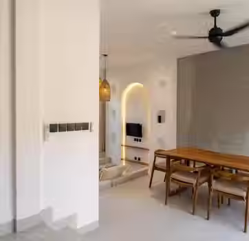 A peaceful 3BR modern tropical home with warm wood, soft lighting and calming greenery views from every room. Enjoy a private pool, two dreamy soaking tubs, enclosed AC living, a fully equipped kitchen,and a sunset-ready rooftop. Tucked in a quiet, construction-free lane yet close to cafés and restaurants. Designed for comfort, privacy and slow living.