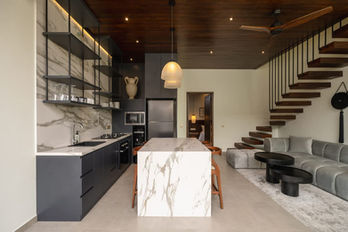 Outside, your private pool is framed by lush greenery and a beautifully finished wooden deck. The courtyard setting feels secluded and peaceful... perfect for morning swims, sun-soaked lounging or quiet evenings under soft ambient lighting.