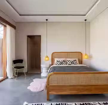 A peaceful, design-forward 2BR home just 5 minutes from Pererenan Road. Enjoy total privacy, no construction noise and bright minimalist interiors opening to a private courtyard pool. Includes high-speed internet, 2x weekly cleaning, weekly linen change, coffee machine, blender, juicer, Samsung Serif TV, and all comforts. A calm, stylish base near Canggu’s best cafés.