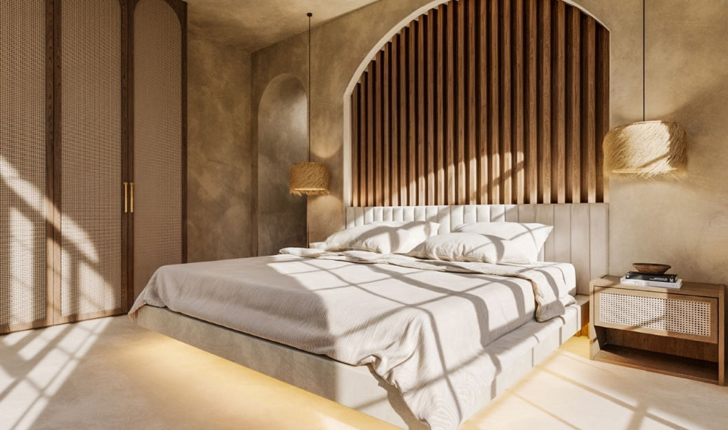 Styled in the same bohemian, Moroccan, and Tulum-inspired aesthetic as the two-bedroom villa, this three-bedroom retreat offers generous living spaces, expansive gardens, and thoughtfully designed interiors. Each bedroom comes with its own ensuite bathroom, providing comfort and privacy in a serene, beautifully curated environment. High ceilings and handpicked decor create a postcard-worthy ambiance that feels both luxurious and welcoming.